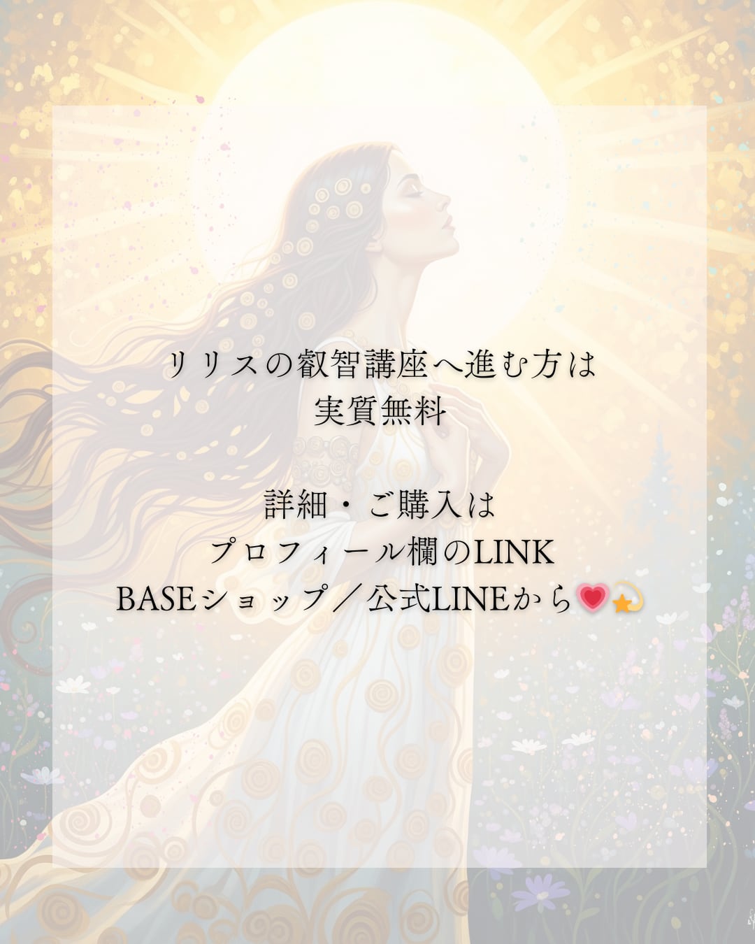 【リリスの叡智 講座】(受講料18,000円)へ進まれる方は、受講料から同額をお引きいたしますので 実質無料 でお受け取りいただけます✩.*˚