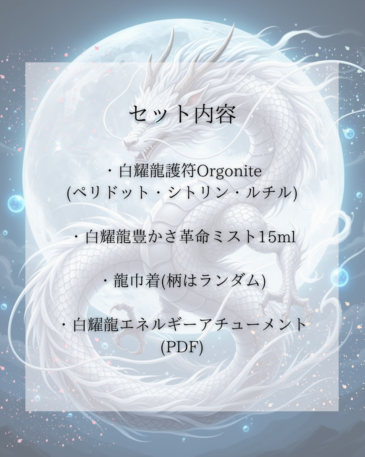 白耀龍のエネルギーで満たされた護符Orgoniteと、同波動で調合された【白耀龍ブレンドミスト】、そしてエネルギーを扱うための【アチューメントPDF】をまとめた“豊かさ革命・完全セット”です❣️