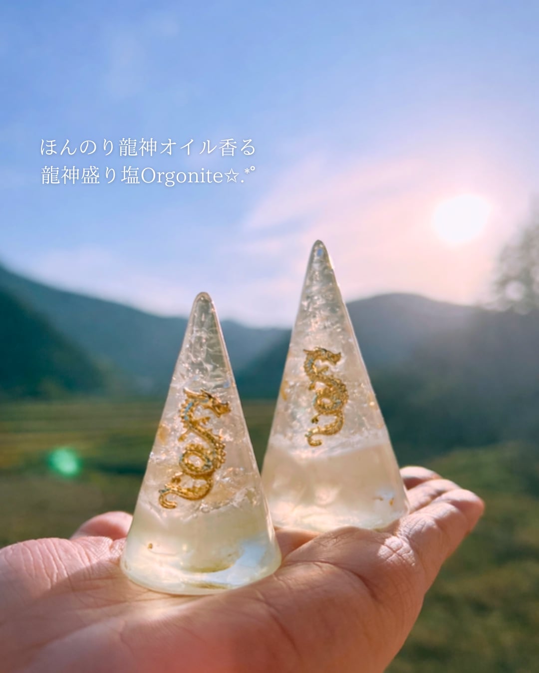 ・盛り塩オルゴナイト小(円錐/龍神オイル)