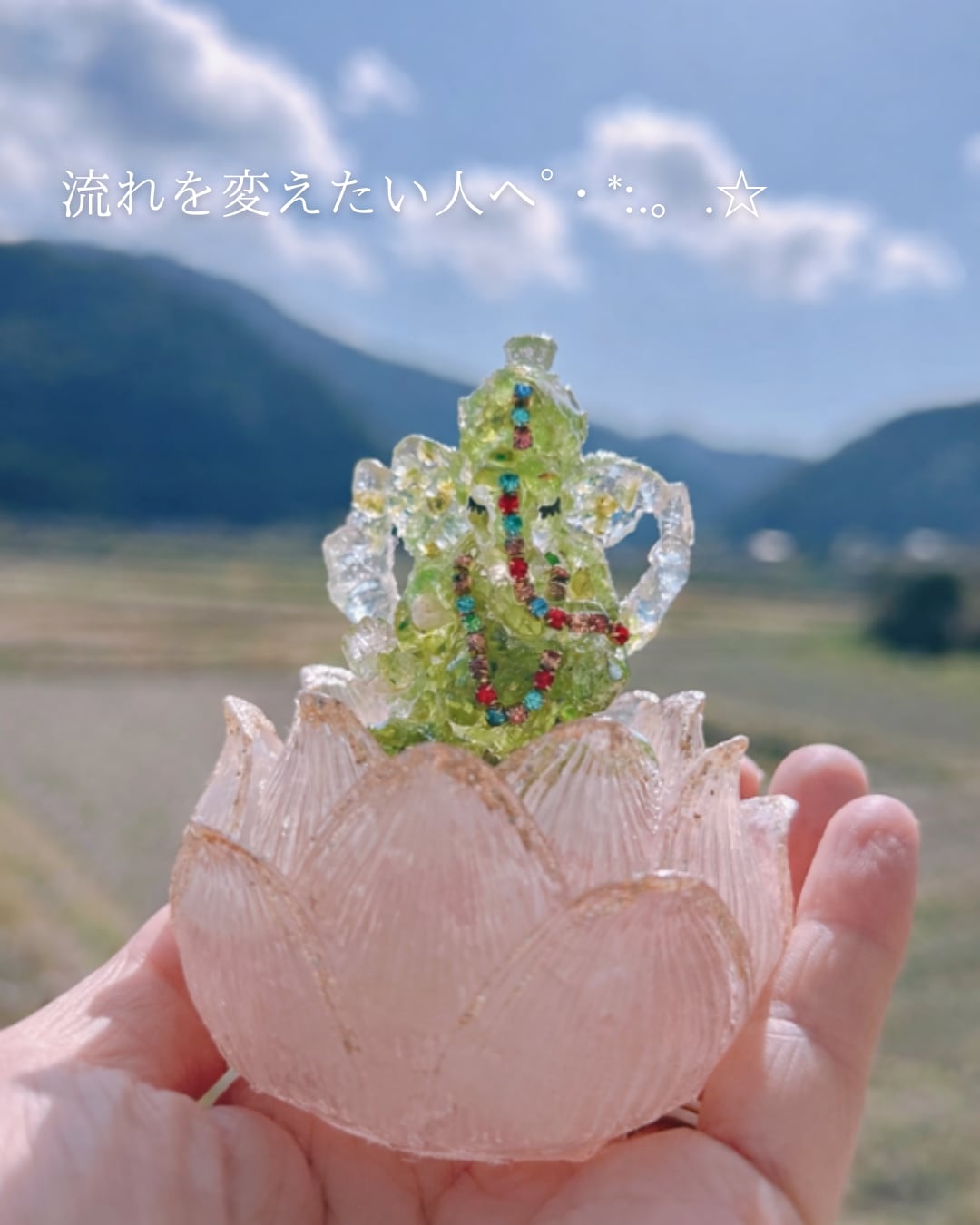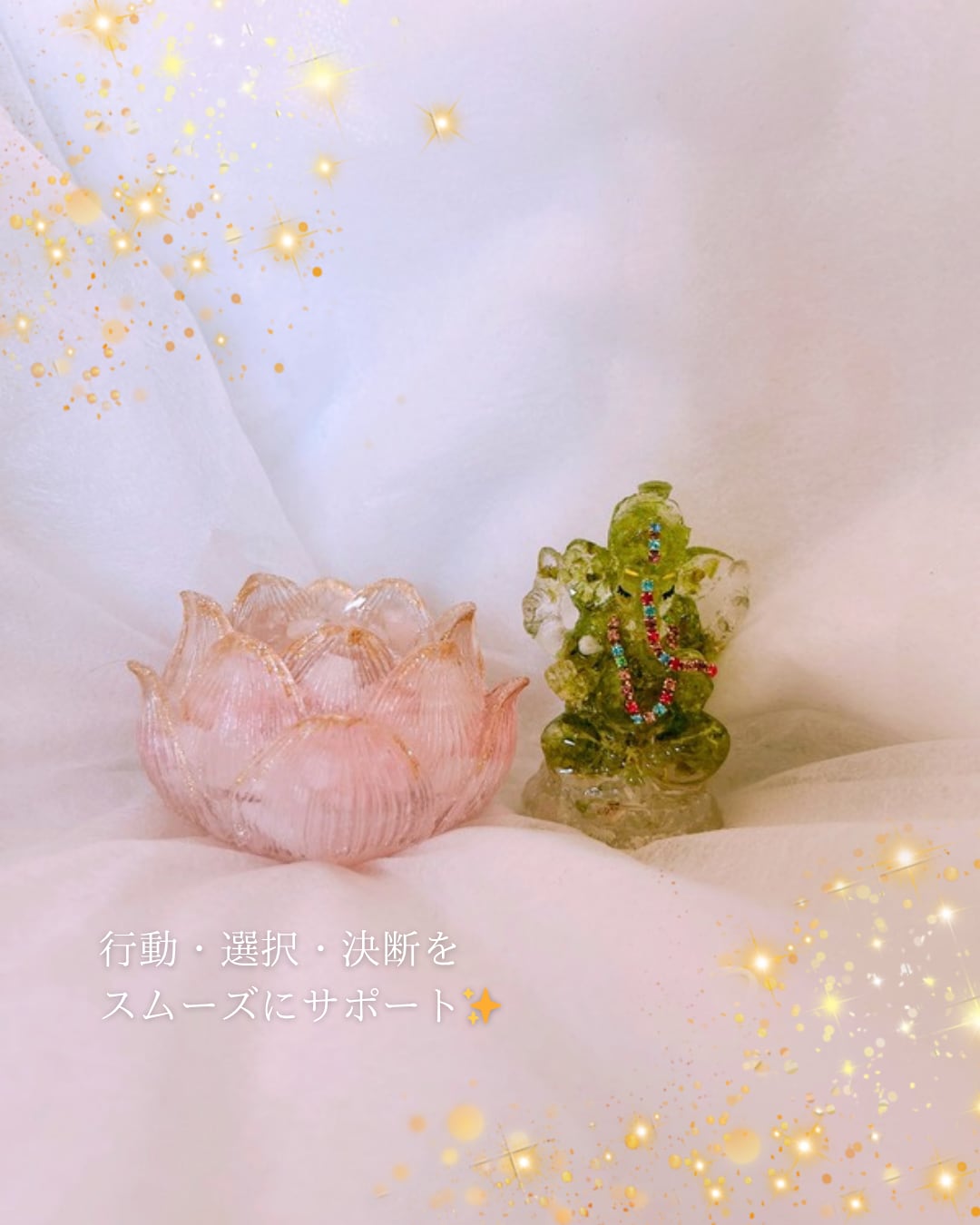 ガネーシャの「現実の流れを動かす力」と調和しエネルギー循環をより高める意図で組み合わせています(*´︶`*)