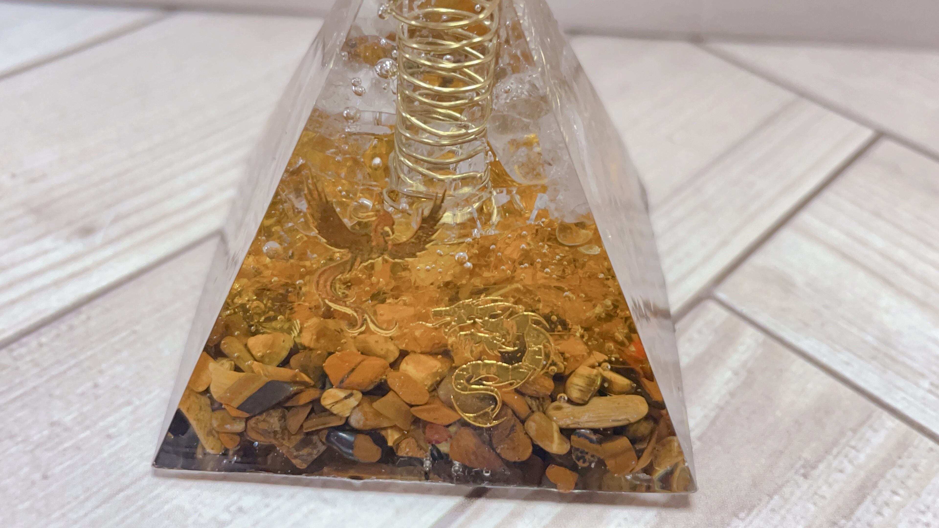 ピラミッド型龍神鳳凰オルゴナイト〜タイガーアイ〜